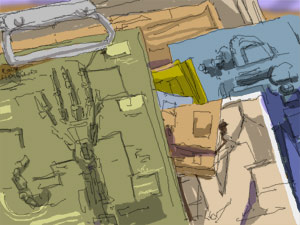 あと4カット。1カット増やしました。フォークリフト(を登場させること)でなんとか乗り切れた、かもしれない。しかし要はダイアログなんだよな。内容ともいう。ああだめだ、気楽にいこ、気楽に。内容はないようではじめたじゃないか。ぼくの博識なんてセリフを打ち込んでる途中にはじめて「あれ、イギリスって占領されてないもんな、されたのはフランスだった。やべ、まちがえた」だもんよ。