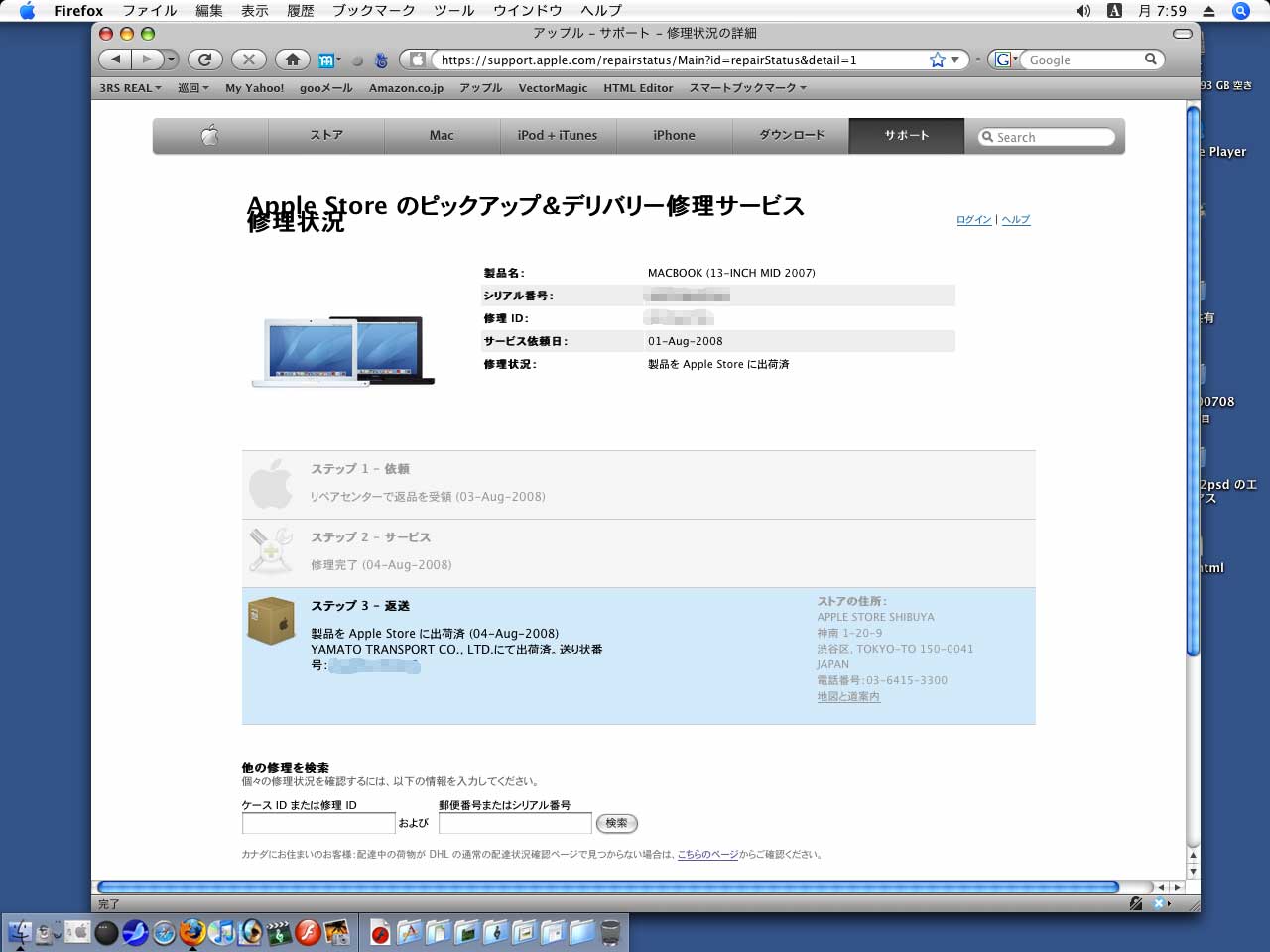 もう修理は終わっているようだ。(1週間とサバを読まれたがおおむね3日あれば終わるだろうとはインターネッツの検索で予想していました)